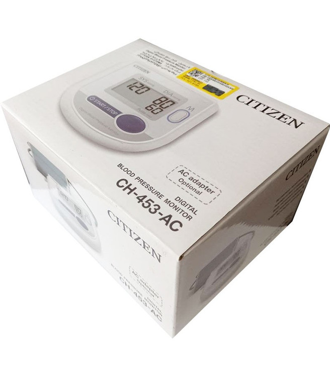 فشارسنج سی تی زن مدل "CH 453AC"بدون شک کنترل فشار خون یکی از ضروری ترین کارها برای همه افراد بعد از سن 40 سالگی است. از آنجا که دستگاههای دیجیتالی بدون نیاز به حضور پزشک برای اندازه گیری فشارخون استفاده می شوند، کیفیت و دقت بالای آنها به شدت اهمیت پیدا میکند. چنانچه این دستگاه ها از کیفیت لازم برخوردار نباشند ممکن است با ارائه نتایج غلط برای فرد ایجاد مشکل نموده و وی را به انجام اقدامات اشتباه راهنمایی کند که می تواند بسیار خطرناک باشد. بنابراین کیفیت محصول اهمیت بسیار بسیار بیشتری نسبت به دیگر ویژگی ها و امکانات این محصولات دارد.فشارسنج "سیتی زن" مدل "cH-453AC" یکی از محصولات کمپانی سرشناس "سیتی زن ژاپن" می باشد. این محصول از محصولاتی است که سالهاست در بازار موجود است و فروش بالایی نیز دارد. این دستگاه بصورت تمام اتوماتیک بوده و فشارخون بالا، پایین و ضربان قلب را فقط با فشردن یک دکمه انداره گیری مینماید.90 حافظه ذخیره اندازه گیری های انجام شده به شما کمک میکند تا این اعداد را با پزشک خود در میان بگذارید.طراحی خاص، کاف کتانی بسیار باکیفیت، تاییدیه کلینیکی ESH از دیگر ویژگیهای این محصول است. این دستگاه با باطری یا اداپتور کار میکند و 4عدد باطری آلکالاین درجه یک نیز در بسته بندی کالا وجود دارد. اداپتور این محصول نیز بصورت جداگانه قابل خریداری است.این دستگاه دارای قابلیت خاموش شدن خودکار و قابلیت میانگین گیری از 3 مقدار اندازه گیری آخر می باشد.